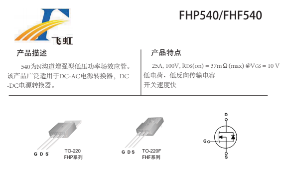 FHP540的主要封裝形式是TO-220、TO-251、TO-252三種,電壓轉(zhuǎn)換器低壓mos管腳位排列位GDS。這款540場效應(yīng)管產(chǎn)品具體參數(shù):Vgs(±V):25;VTH(V):2-4;ID(A):280;BVdss(V):100。RDS (on) = 6.5mΩ(typ)@V GS =10V。具有低電荷、低反向傳輸電容開關(guān)速度快,內(nèi)阻低的特點(diǎn)