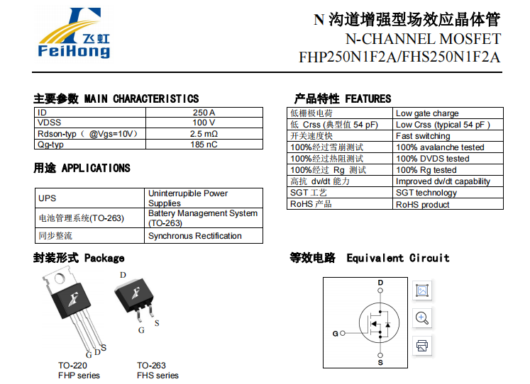 為何?因為FHP250N1F2A具備100% EAS測試、100% DVDS熱阻測試、100% Rg測試、低導(dǎo)通內(nèi)阻、低柵極電荷、VTH細(xì)化分檔、SGT工藝。