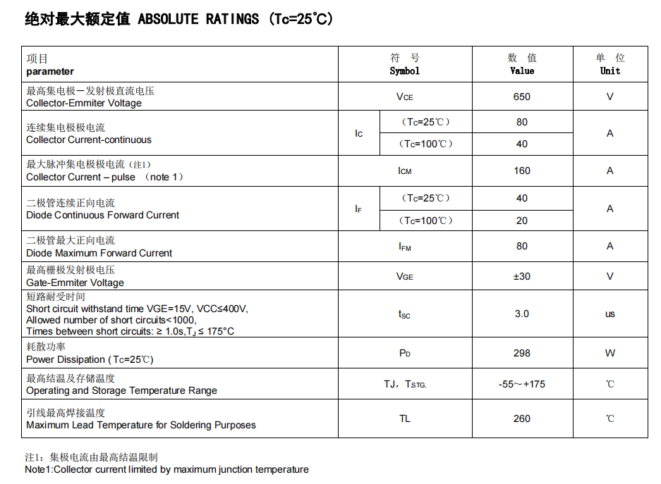 UPS工頻逆變電路作為重要的工業使用產品,在其產品質量保證的IGBT選擇,除選用FGH40N60SFD型號外,還可以用飛虹半導體的國產型號:FHA40T65A型號參數來代換。在全橋拓撲結構中選用4個FHA40T65A型號IGBT即可。
