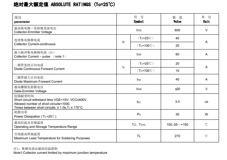 代換NCE20TD60BF型號參數的IGBT,角磨機無刷電機可用FHF20T60A型號。